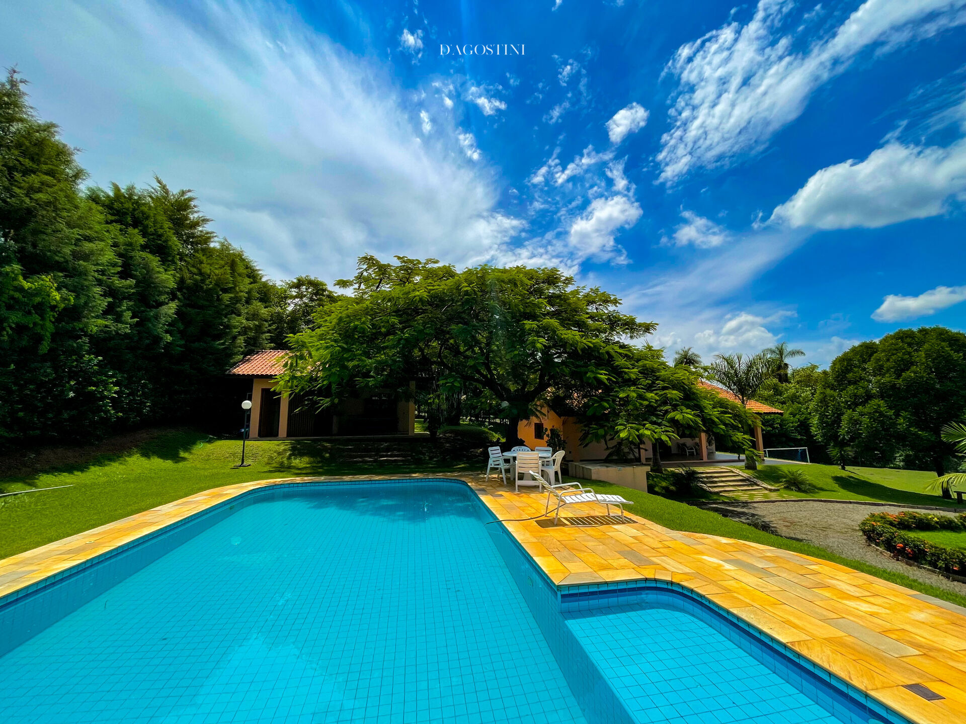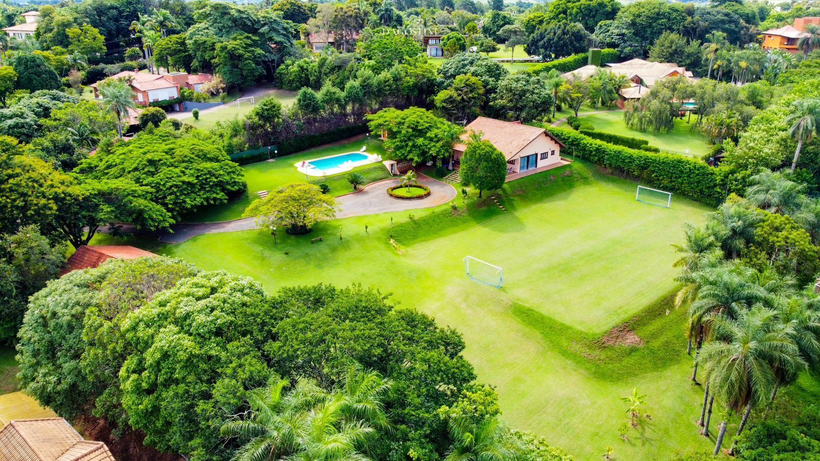 São 300 m² de área construída em um terreno de 5.429 m², com topografia perfeita e ótima insolação.